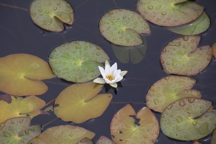 ヒツジグサかな。白と黄色のコントラストが美しいです。