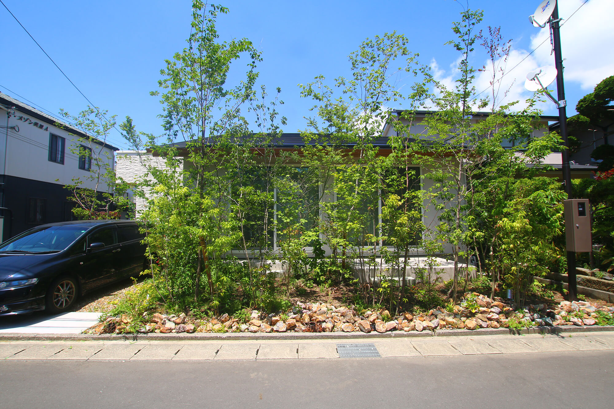 静岡市 外構・雑木の庭|ほどよく視界をさえぎる、心地よい植栽 2020.12.07 | オープンタイプ石雑木雑木の庭 Planning|設計・施工のポイント 道路に面した庭に、タイルのテラスと、フェンスは設けずに植栽で目隠しをしたいとのご要望でした。 目隠しだけでなく、建物の中からの見た目も考慮し、植栽の配置とタイルテラスの形状を考えました。適度に外からの視界を遮り、木漏れ日や心地よい風を感じられる住まいには欠かせない庭ができました。 島田市 外構・雑木の庭|印象的な古民家を引き立てる植栽 岡崎市 園庭|岡崎市子供療育センター 他の記事を見る 名古屋市外構エクステリア|植栽でアプローチを誘導 2014.10.08 | アプローチオープンタイプ大谷石雑木 掛川市 雑木の庭|起伏をたのしむウッドデッキのある庭 2021.06.15 | ウッドデッキ水脈水脈改善雑木雑木の庭駐車場高低差をデザイン 袋井市外構・雑木の庭|角地を生かす植栽 2020.07.21 | ウッドフェンスオープンタイプ大谷石雑木の庭駐車場 タグ一覧 ウッドフェンスオープンタイプ大谷石雑木の庭駐車場