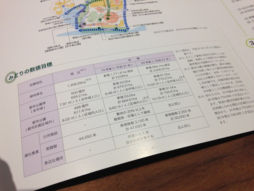 この冊子に目を通すと緑地の保全や緑化の推進に関して、その将来像、目標、施策などを定める基本計画が載っていいるのです。いいこと、書いてあるんですよ。