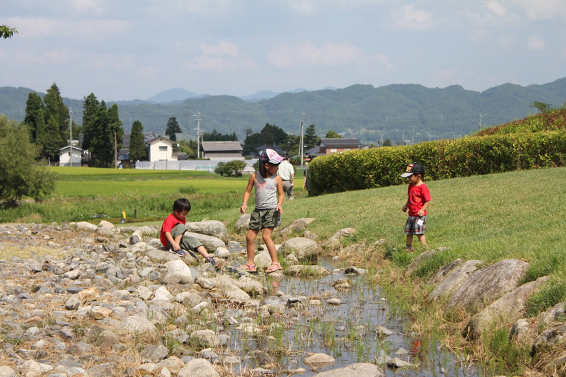 最初に巡ったところは、安曇野ちひろ美術館。アルプス山脈を借景に広大な芝生と小川がある素敵で癒される場所です。いわさきちひろの作品とリンクするロケーションに思えます。