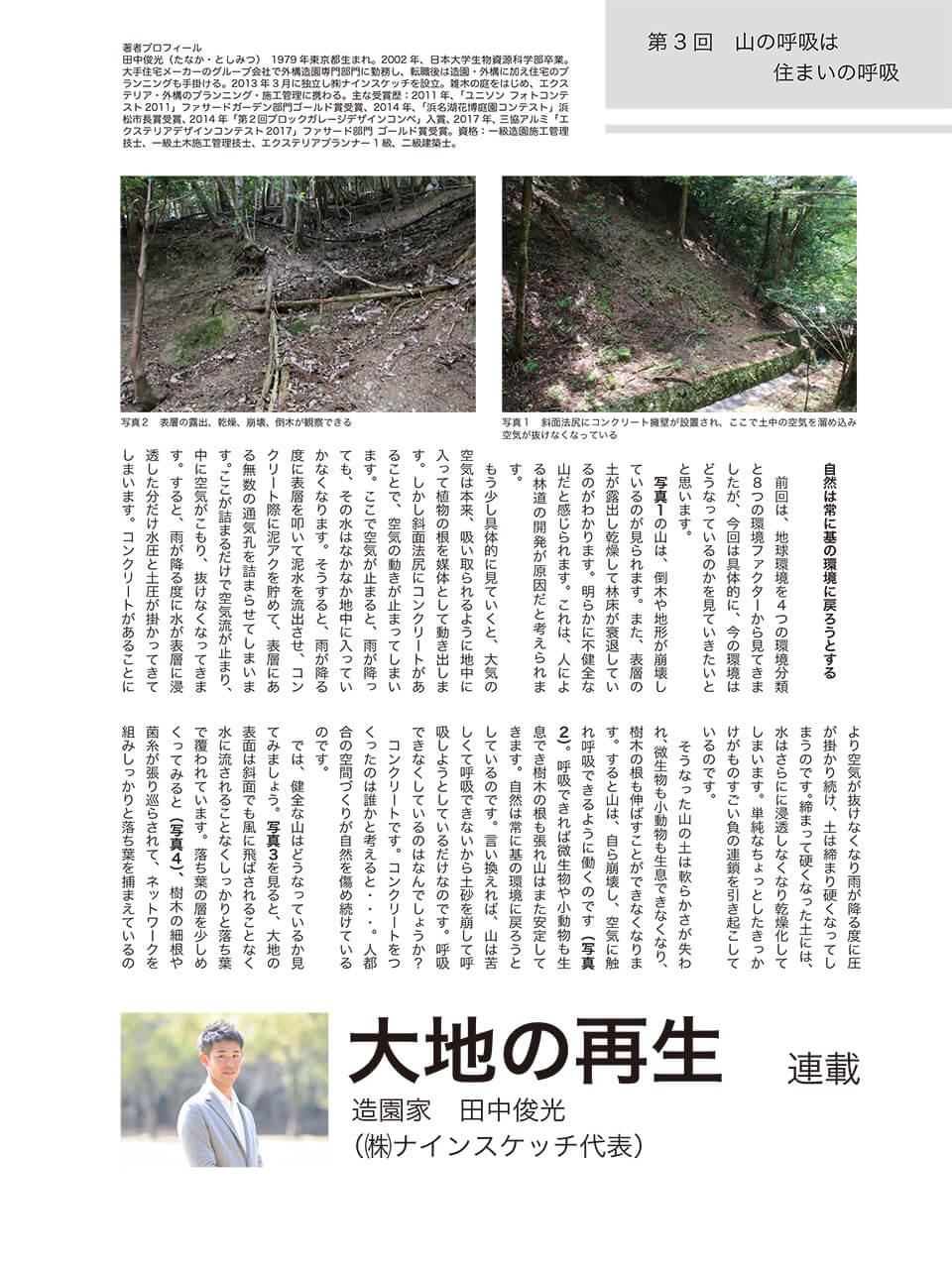 日本では都市開発にともない、山や平野がコンクリートで固められることで、こうした土中の水や空気の流れが滞っている土地が多くなっています。近年頻発している、大規模な土砂災害も、大地が悲鳴を上げている証拠ではないでしょうか。