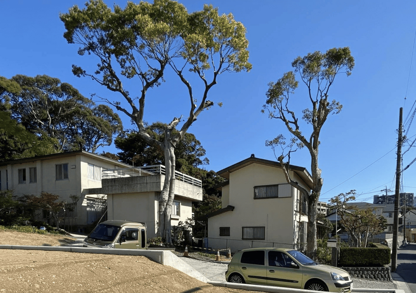 個人宅の敷地で昔からある、エノキとクスノキ。どちらも傷んでいて土壌改良をして樹勢回復をすることができました。